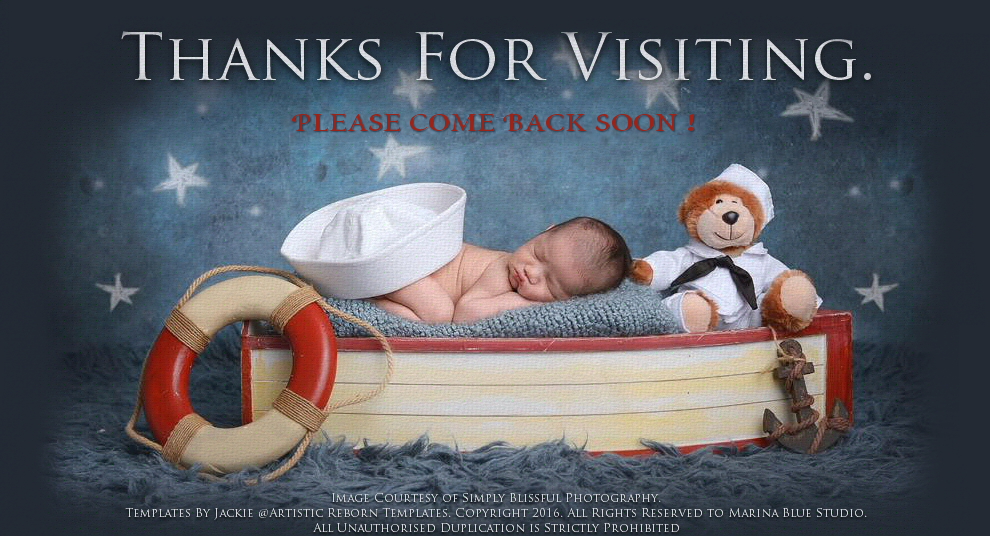 Stevie is the first Silicone Edidition that was entirely created by us in Marina Blue Studio. I have sculpted the baby in polymer clay OOAK by hand. Then with help of my husband we molded and poured Stevie in Platinum Based EcoFlex20 soft squishy silicone. Stevie is going to be a very limited Edition (Up to 5-10 pieces depending on the molds) The baby is a big preemie size 17" baby. Cloth body. Full legs and 3/4 arms. Limited Edition Certificate, signed and numbered by the original artist will be inluded. We might have some blank kits for sale - please contact us for availability.